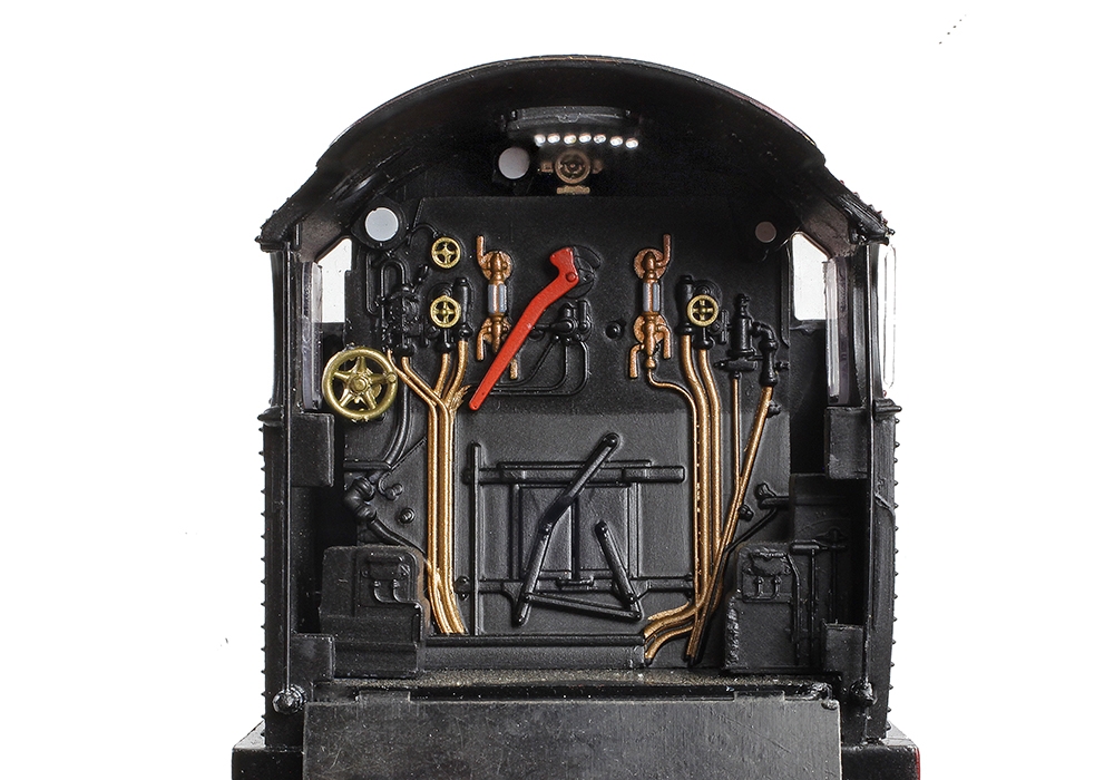 Within the cab, a detailed boiler backhead is present and the pipework and controls are enhanced with individual decoration. The ventilator on the cab roof is a separate part, allowing it to be posed in the open or closed position, or somewhere in between. The high level of decoration is not reserved only for the cab interior of course, and the model boasts an authentic rendition of the BR Lined Green livery complete with full-colour early emblems. The beautifully crafted livery application is finished with precision printed details like the running number, shed code and builders plaques, whilst etched nameplates are supplied for user-fitting to complete the look of this express locomotive.