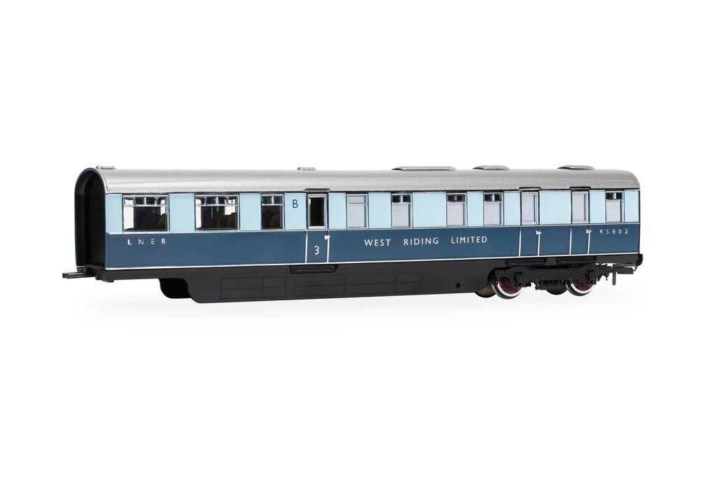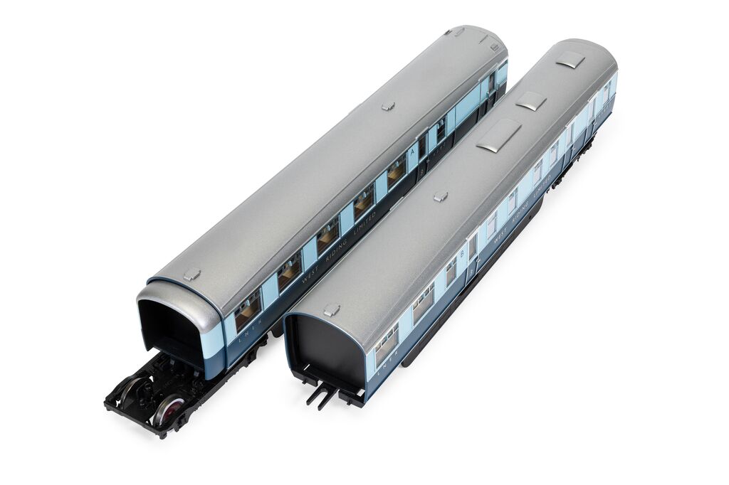 A new set of carriages was built that was identical to the ‘Coronation’ with four twin articulated coaches, though not the streamlined beavertail observation car, and named the ‘West Riding Limited’. Carriages were in pairs, sharing a bogie between the two, thus reducing friction and improving ride quality.